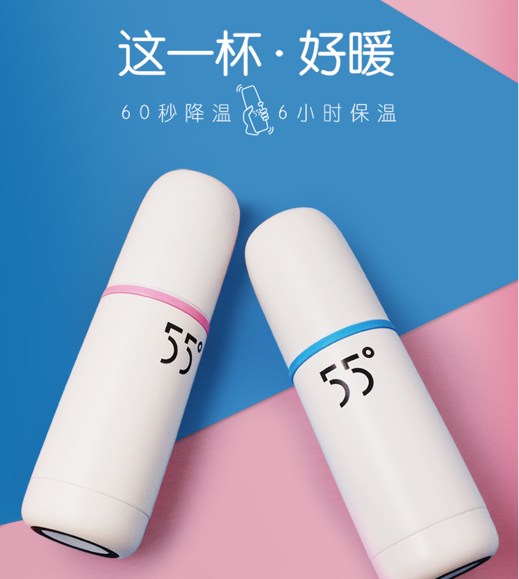55度杯是一款具有快速變溫水杯,是北京五十五度科技有限公司自行研發(fā)、設(shè)計(jì)、生產(chǎn)的**款實(shí)用新型專利的高科技產(chǎn)品,瞬間因其強(qiáng)大功能在網(wǎng)絡(luò)走紅,成了各大電商的新寵。