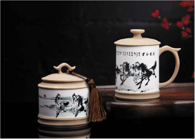 玉映砂臺面杯茶葉罐兩件套
