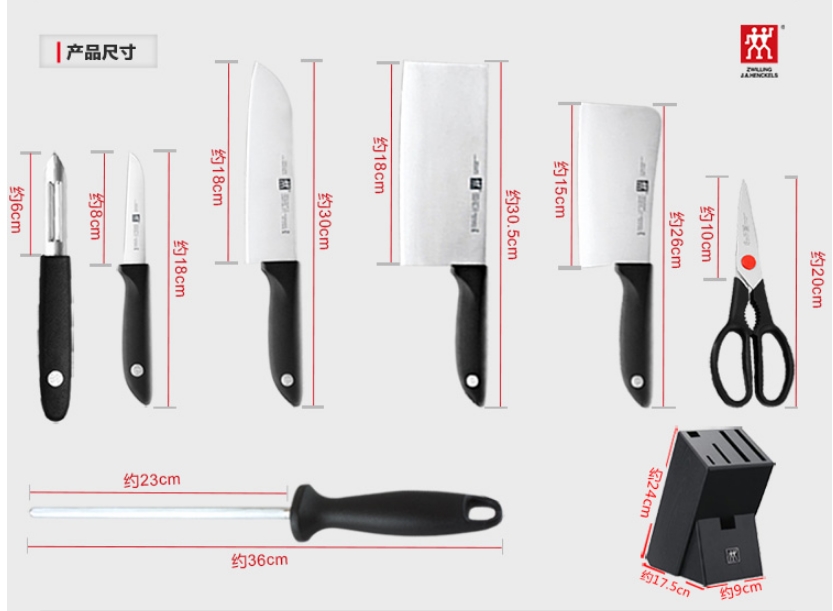 雙立人的四星系列刀具*早出現在1976年,具有里程碑意義。這一套四星木制插刀架套裝包括水果刀、三明治刀、廚房叉、面包刀、砍刀、西廚刀、切片刀、去骨刀、磨刀棒及黑色廚房多用剪櫸木插。