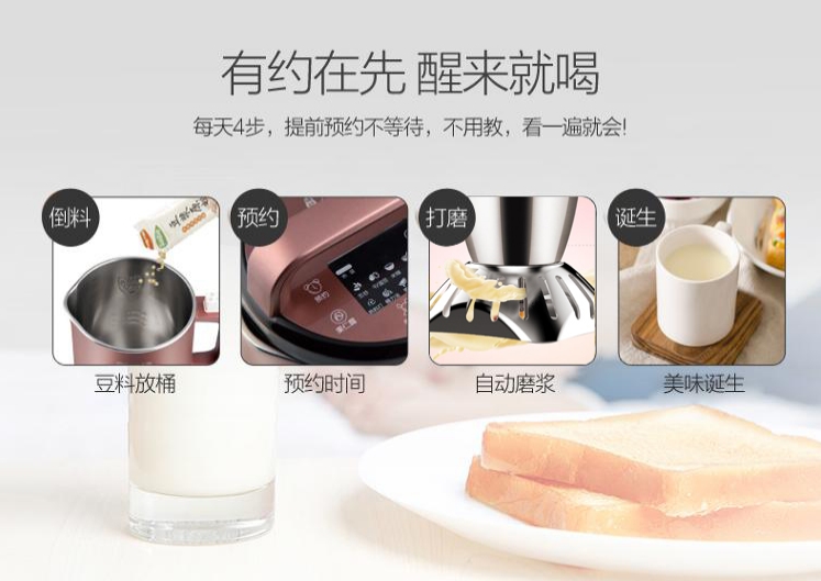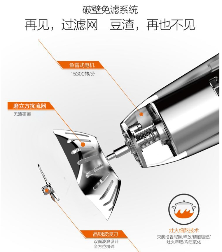 賣 點(diǎn):雙層鋼杯體全自動(dòng)豆?jié){機(jī),米糊、五谷、果蔬功能、環(huán)繞立體加熱,打破細(xì)胞壁,破壁免濾